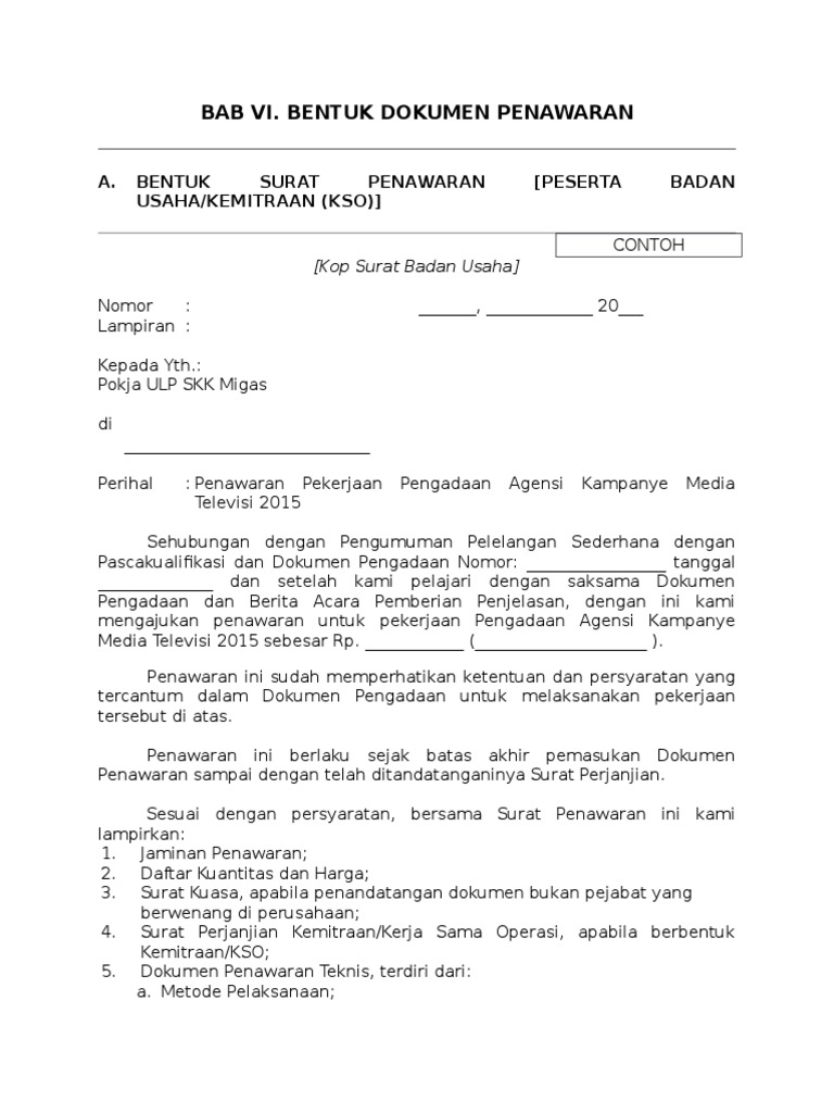 | Lihat Pdf Bab Vi Bentuk Dokumen Penawaran A Bentuk Surat Penawaran Peserta Badan Usaha Kemitraan Kso Untuk 1 Satu File Kop Surat Badan Usaha Kemitraan Kso Heri Purwoko Academia Edu |